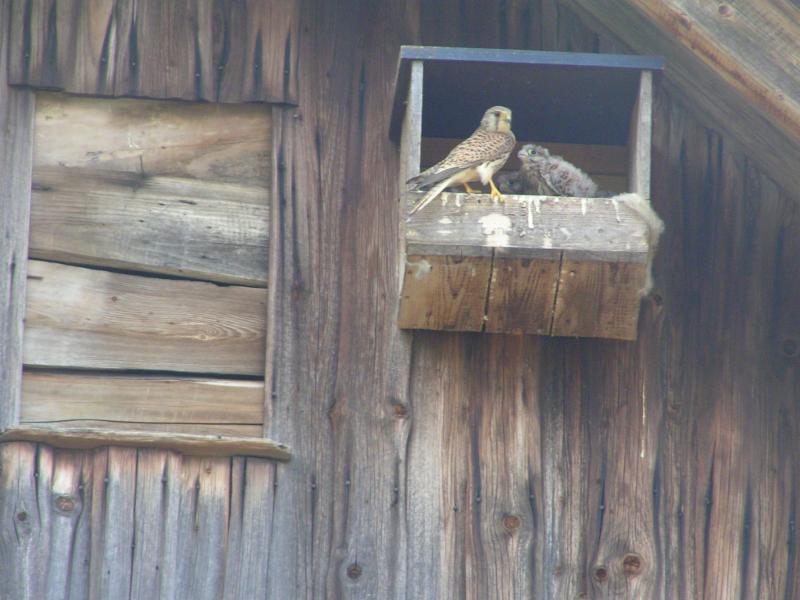 Turmfalken beaufsichtigen von der alten Scheune aus die Werkstatt.